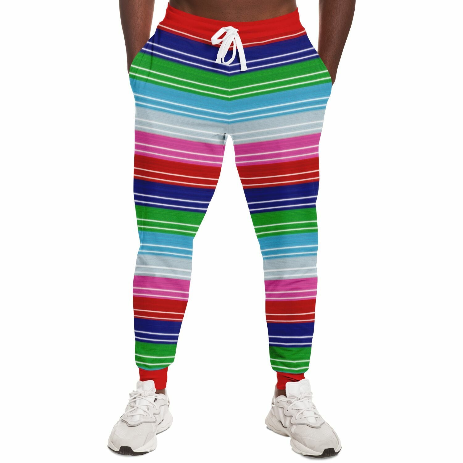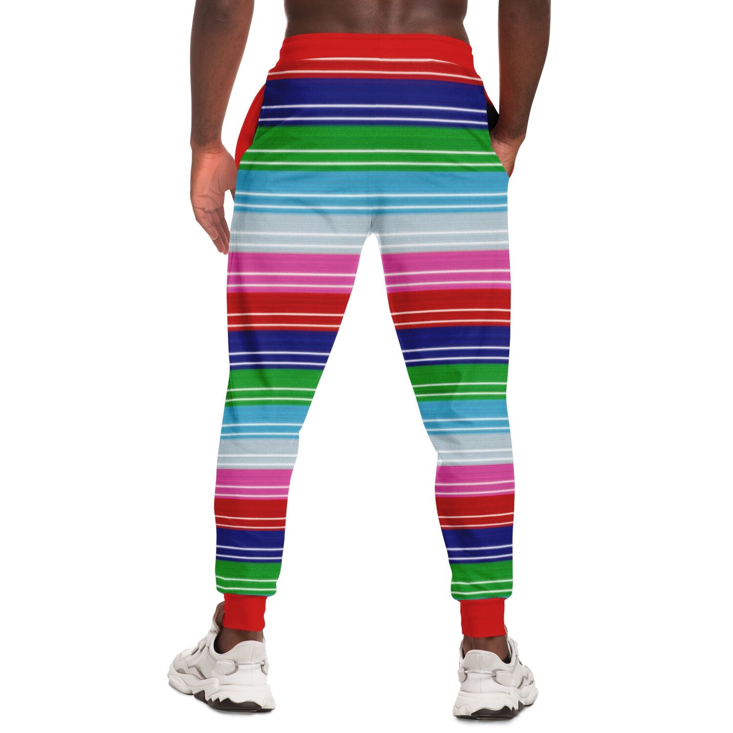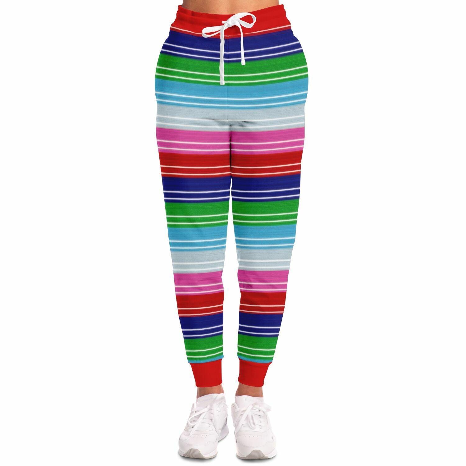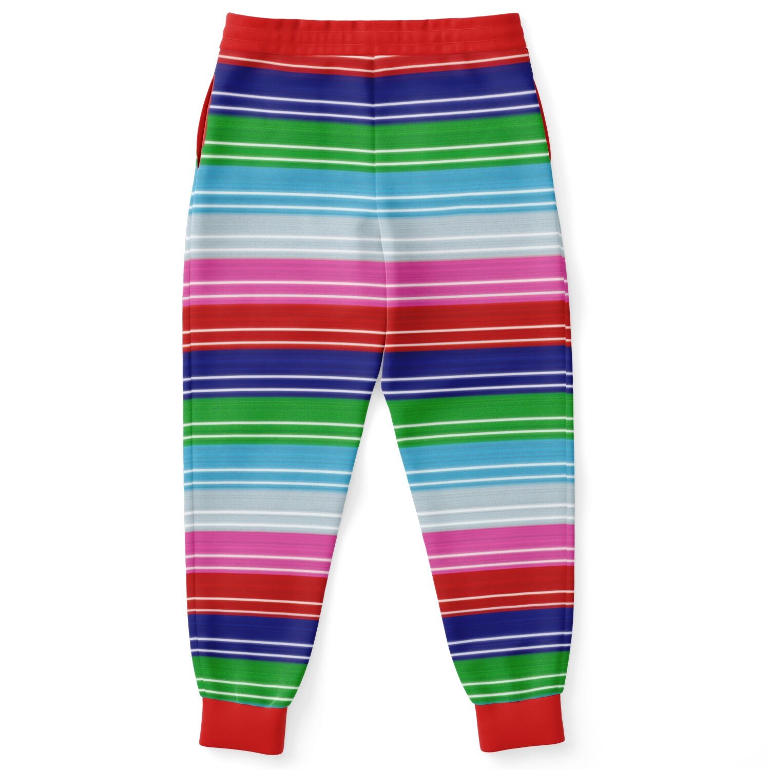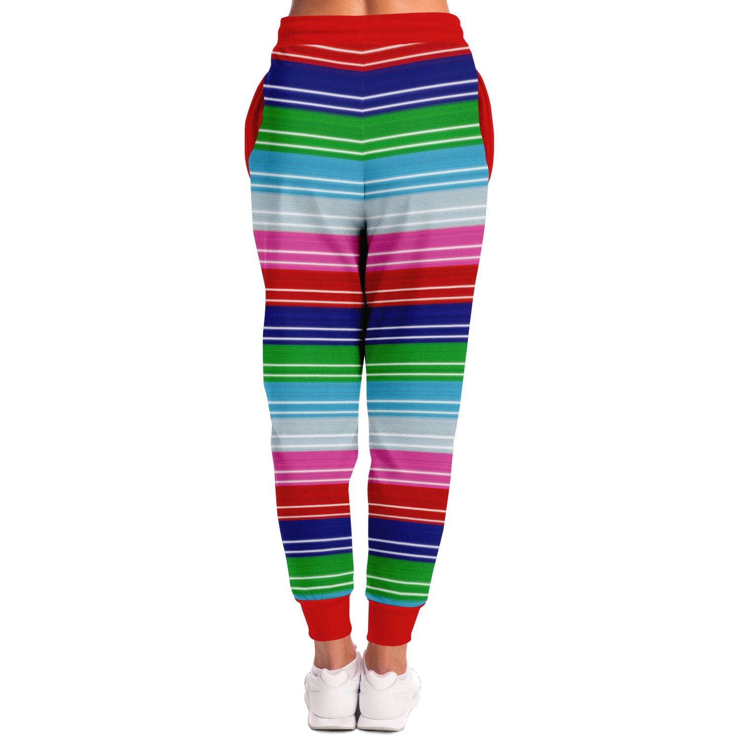 Chucky-inspired striped Fashion Jogger featuring a bold horror knit pattern inspired by cult slasher aesthetics.