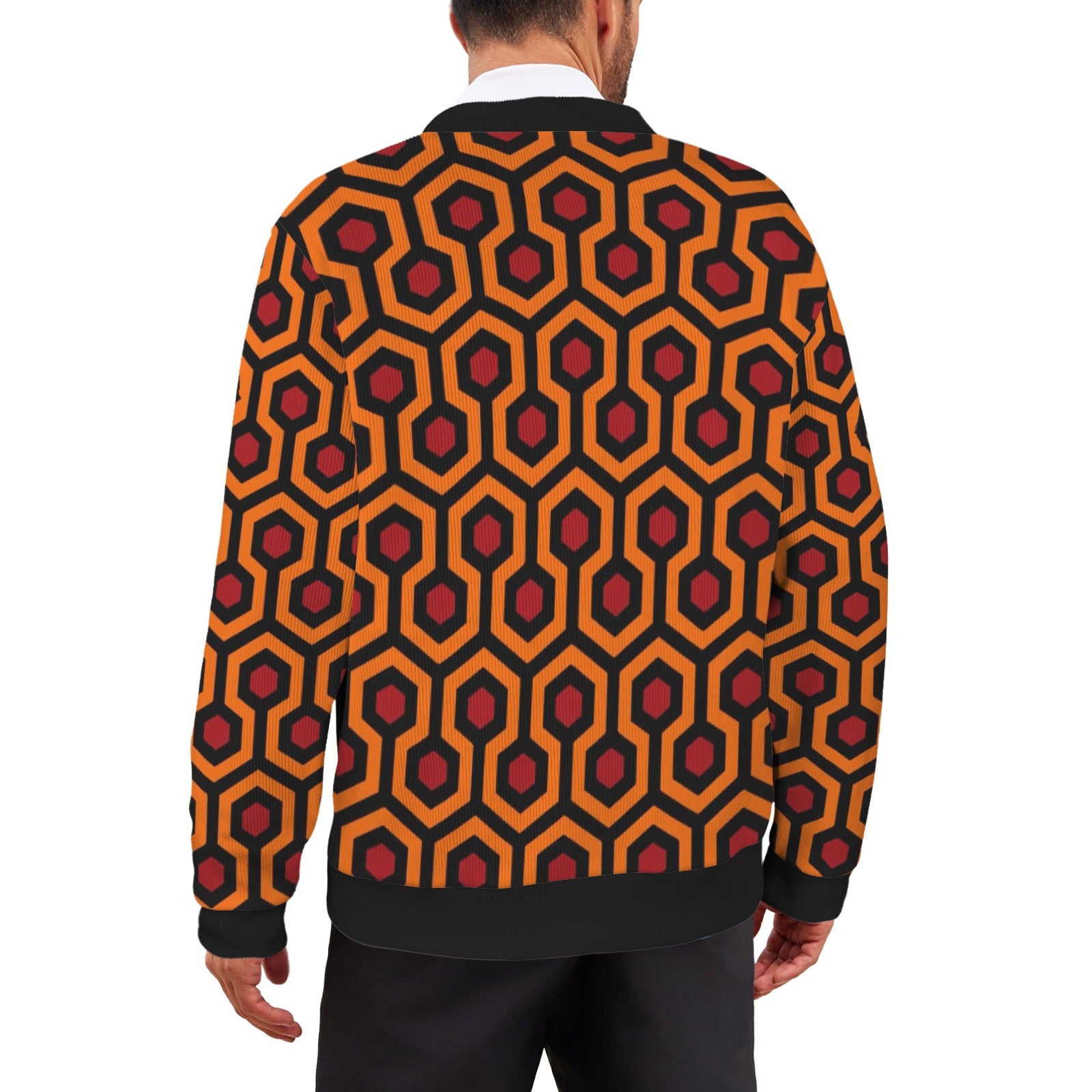 Dress to impress with our Men’s Overlook Hotel Pattern Cardigan. Inspired by the iconic film The Shining, this cardigan exudes luxury and sophistication. Featuring a unique design inspired by the iconic carpet pattern from the film, this cardigan is sure to make a statement and elevate any outfit to the next level. Stay warm and stylish with this exclusive piece of fashion.