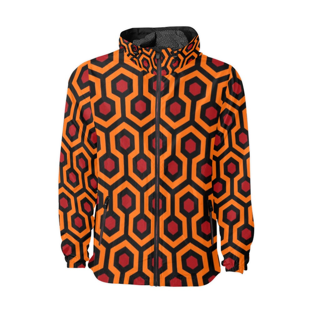 This hooded windbreaker features a bold all-over graphic based on the iconic Overlook Hotel carpet pattern from The Shining. Instantly recognizable to film lovers, the geometric design delivers strong cinematic energy with a modern streetwear edge.