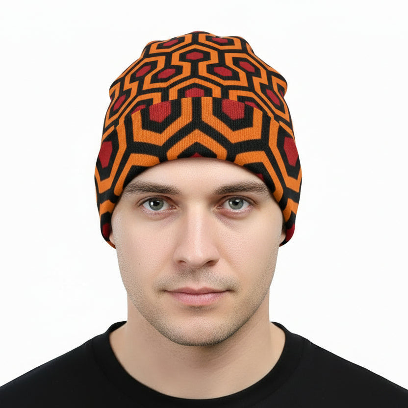 Warm up with this Overlook Carpet Pattern Knit Beanie inspired by The Shining's most infamous room. Perfect for horror fans who want to rock cinema style with a cozy knit that keeps the chill away..