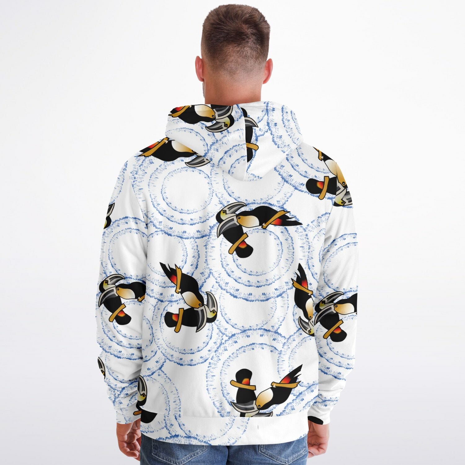 Break the first rule and make a statement in this Tyler Durden Toucan Hoodie, inspired by the unforgettable shirt worn by Brad Pitt in Fight Club. Featuring a bold toucan pattern reimagined in a modern all-over print, this hoodie fuses rebellion with retro charm.